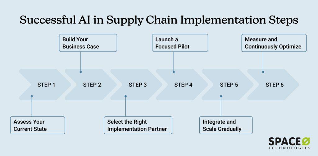 Implementing AI in supply chain management doesn’t have to be overwhelming. By following a structured approach, you can move from planning to operational results systematically. This roadmap guides you through each phase, from identifying opportunities to measuring success. Companies that follow this process reduce implementation risk while accelerating time-to-value.