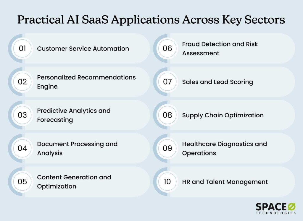 The business case is clear. Now let’s see how this translates into concrete applications. Here are the AI SaaS use cases delivering the biggest returns across industries today.