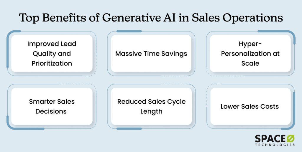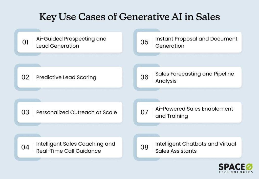 buyers, and close deals. From automating repetitive workflows to creating personalized outreach and providing deeper pipeline insights, generative AI equips sales teams with the intelligence and speed needed in a competitive market. Companies that adopt it early gain a clear advantage with better productivity, stronger buyer alignment, and faster deal cycles.