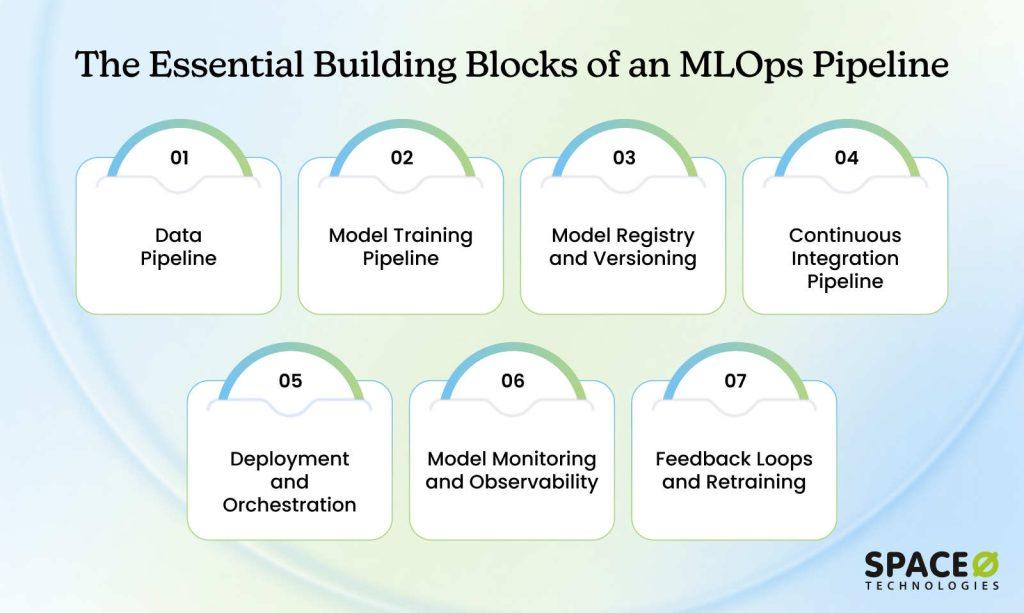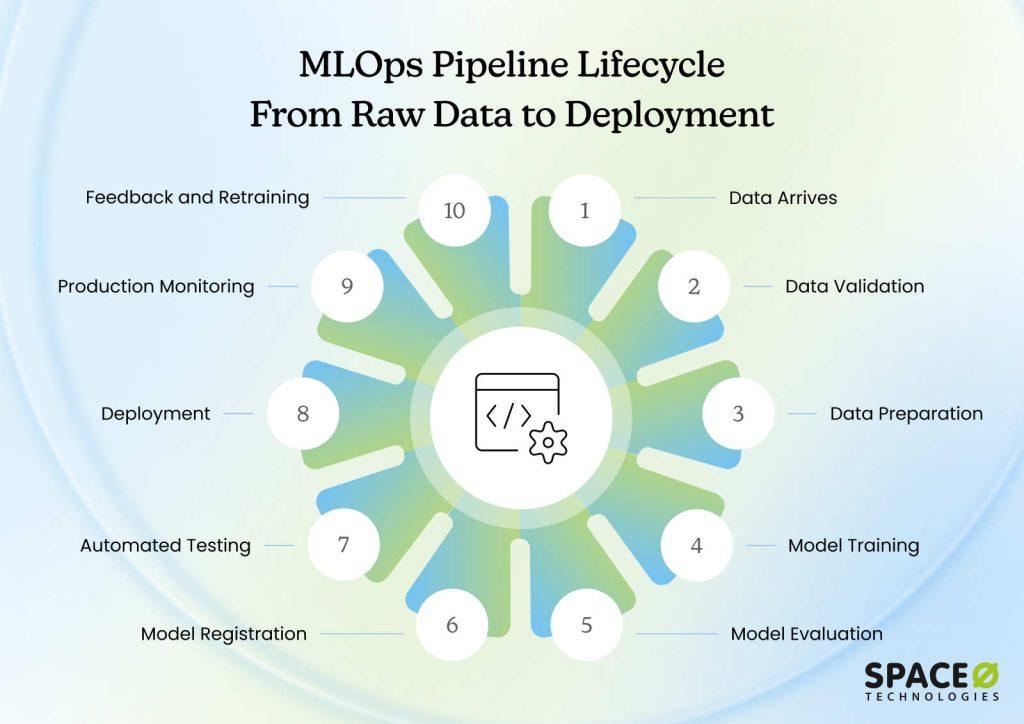 An MLOps pipeline automates your entire machine learning lifecycle from data ingestion through training, deployment, and continuous monitoring. Organizations implementing these systems deploy models in days instead of weeks, improve accuracy through automated retraining, and maintain reliability at scale. The competitive advantage comes from speed and operational excellence.
