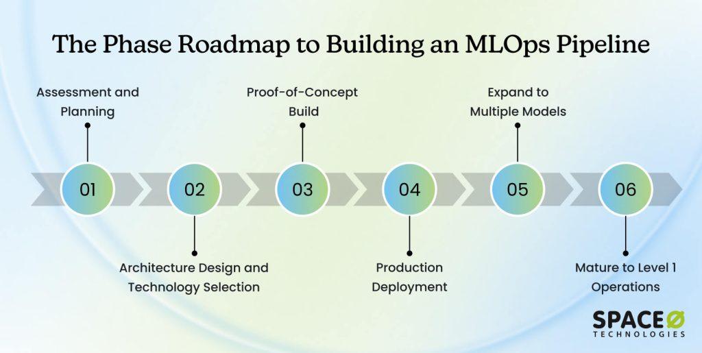 Building an MLOps pipeline isn’t something you do overnight. Organizations need a structured approach to implement these components successfully. Here’s a practical implementation roadmap that shows you exactly how to get started.