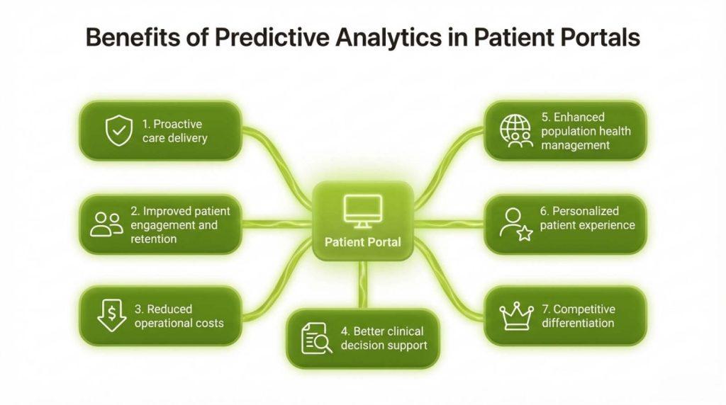 Implementing predictive analytics within patient portals delivers measurable advantages for healthcare organizations, clinical teams, and patients. The following benefits illustrate why healthcare leaders are prioritizing these capabilities.